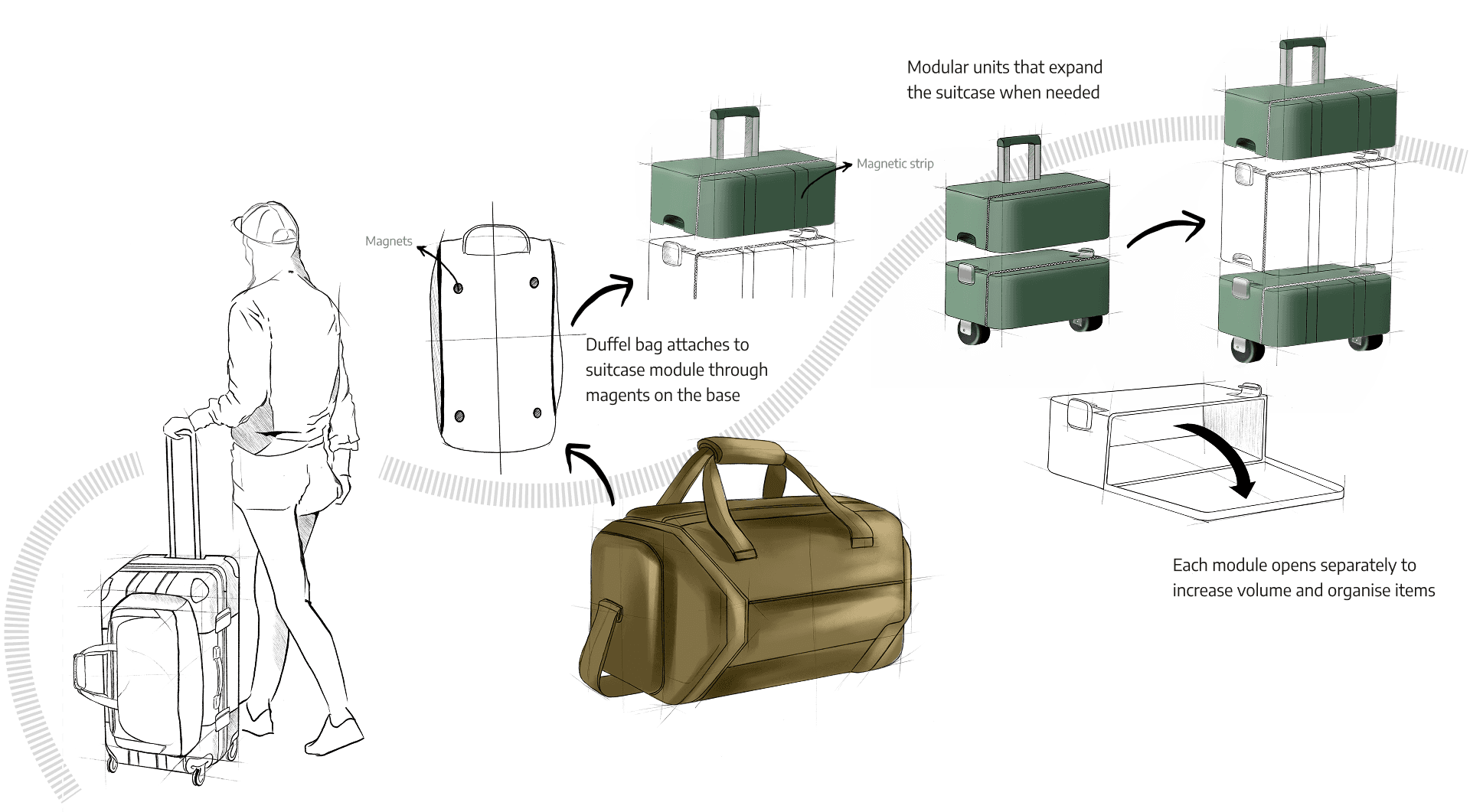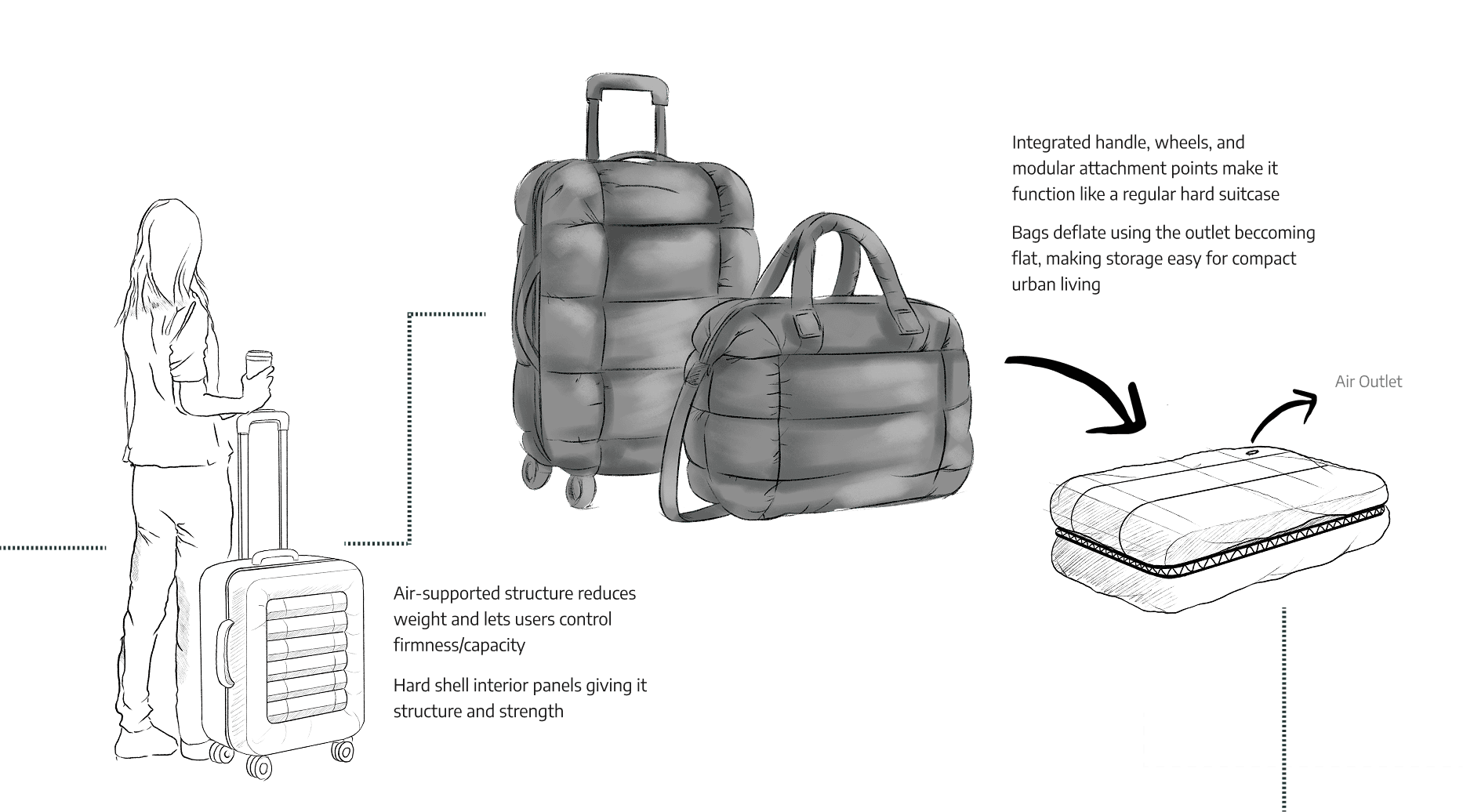 This project was part of my System Design course, where I explored how different travel products can work together as a coordinated setup. I focused on the shape, proportions, and components of a hard shell suitcase, and how these details improve usability during everyday travel