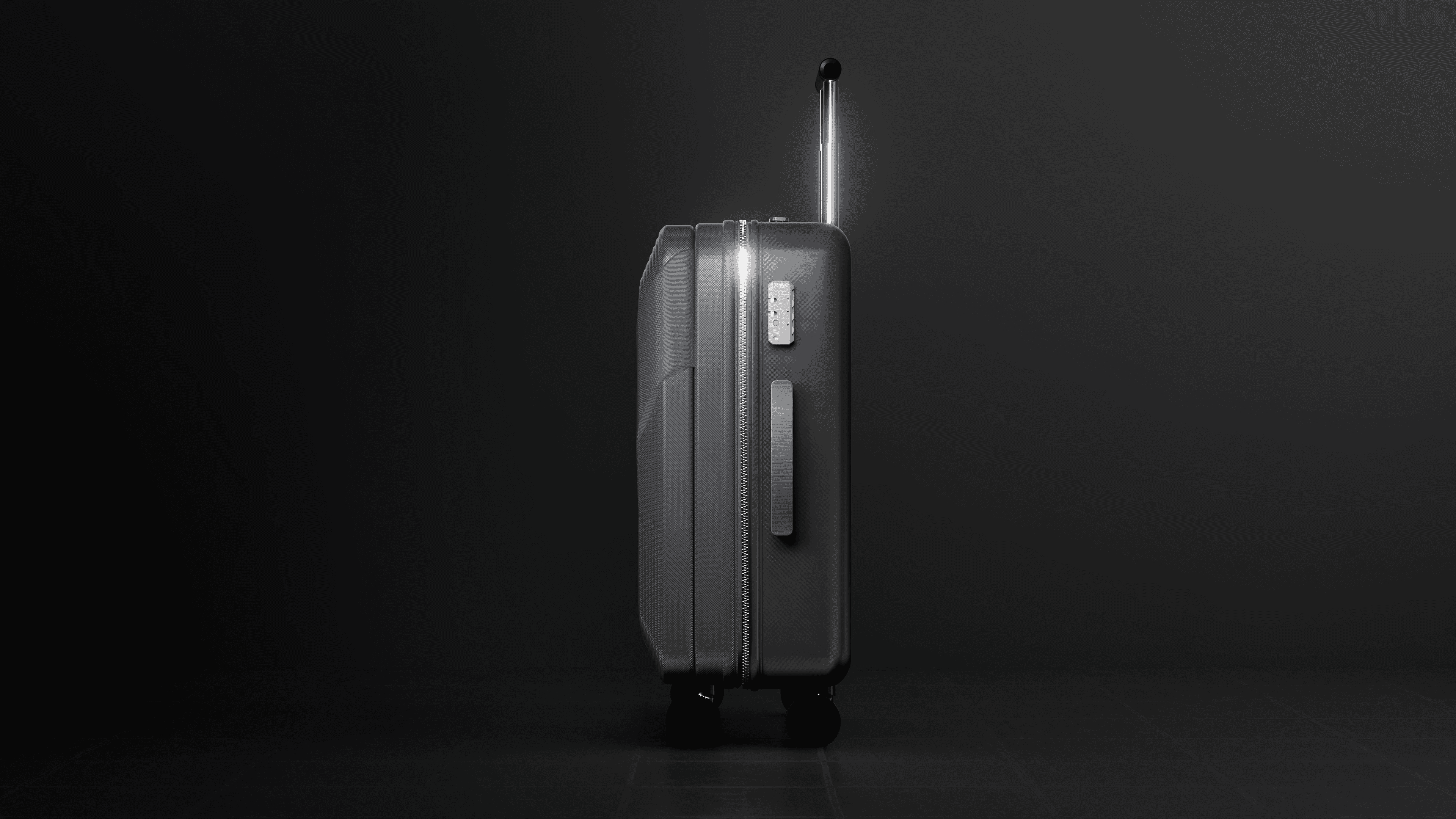 The final renders show the overall character of the suitcase. The textures, corner detailing, and surface transitions highlight how the bag holds its shape. Close-up shots capture the wheel design, handle grip, and zipper detailing. The lighting helps show the K-mark and how it becomes part of the structure instead of just a graphic element.